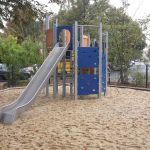 Einer von wenigen Spielplätzen in dieser Ecke. Durch die Nähe zur Hauptstraße verliert er jedoch wieder an Attraktivität. Ein kleiner Sandkasten, ein Klettergerüst, Schaukelrabe und Tischtennisplatte bieten dennoch Spaß für groß und klein.