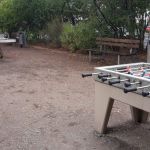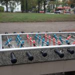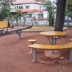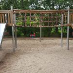 Der Spielplatz selbst besitzt zwei Wippen, zwei Schaukeln, eine Rutsche, „Klettersteine“ und einen kleinen Buddelkasten mit einer sehr gut gefüllten Spielzeugkiste. Außerdem gibt es Tischtennisplatten, ein Sportfeld für Fußball/Basketball und natürlich den Park.